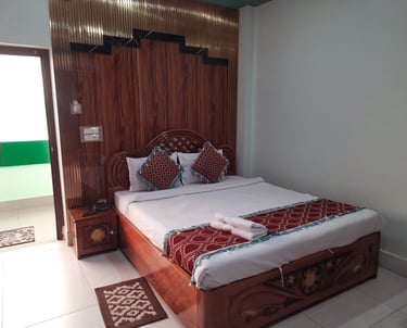 Attached Luxury Bathroom: Equipped with premium toiletries and 24/7 hot and cold water.